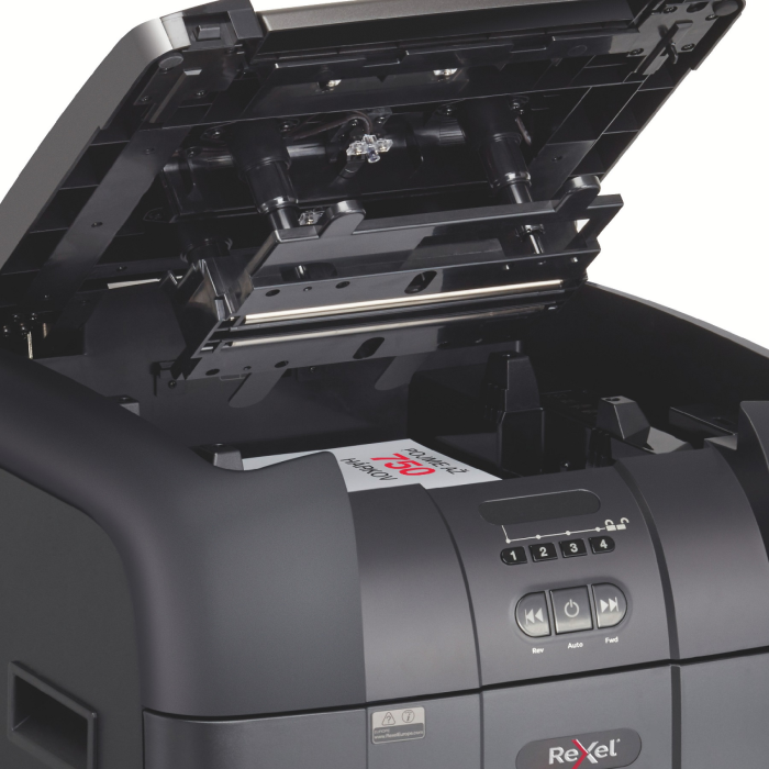 "Funkcia automatického podávania pre až 750 hárkov (80 g/m2) alebo manuálneho plnenia po 12 hárkoch A4 (80g/m2)