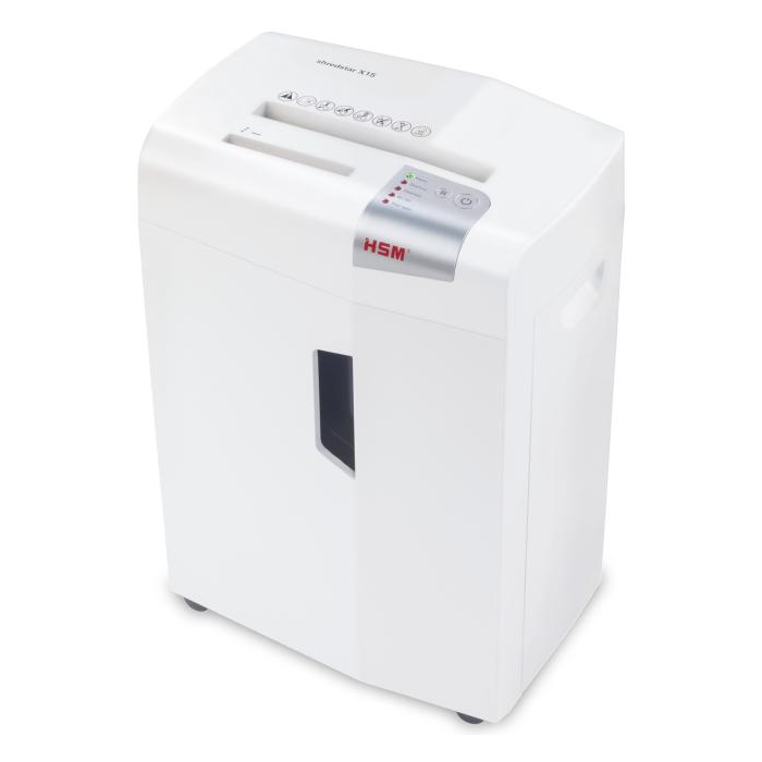 Top model na kolieskach radu HSM shredstar . Tichý a výkonný, skartuje CD, DVD, plastové karty a spinky. Rozdrvený materiál sa samostatne separuje. Plný zásobník sa zobrazí na displeji a stroj sa automaticky vypne. Automatický spätný chod eliminuje zasekávanie papiera a zaisťuje plynulú prevádzku. LED indikátor zobrazuje prevádzkový stav zariadenia: napájanie, preťaženie, prehriatie, plný kôš, otvorené dvierka. Stav naplnenia odpadovej nádoby je vždy viditeľný cez kontrolné okienko. Veľkosť rezu: 4 x 37 mm, kapacita 15 listov. Šírka vstupu 230 mm, objem odpadového koša 26 l. Rozmery 390 x 300 x 595 mm (šxhxv), hmotnosť 13 kg.