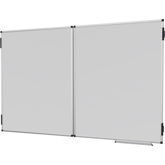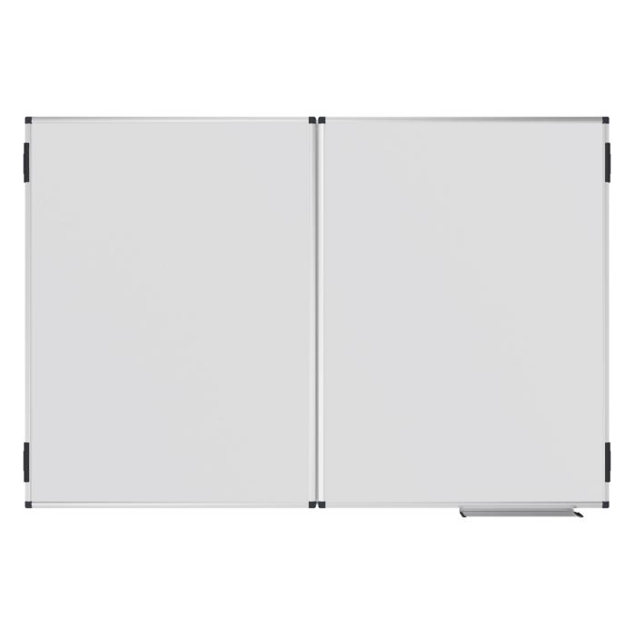 Rozkladacia hybridná magnetická tabuľa s dostatkom miesta na písanie, pripevňovanie poznámok a obrázkov v konferenčných miestnostiach alebo učebniach. Dve obojstranné výklopné krídla, ktoré možno zaaretovať pomocou klipov. Vhodné na písanie fixkami na tabuľu stierateľnými za sucha. Vrátane odkladacej lišty (30 cm), montážnej sady a montážneho návodu.