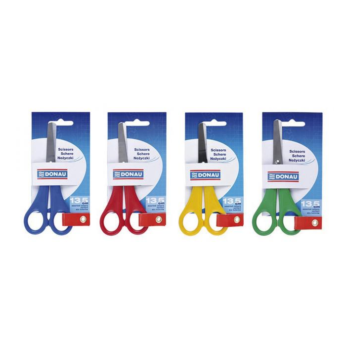 Školské nožnice vyrobené z nehrdzavejúcej ocele veľmi vysokej kvality. Zaoblené ostrie, extrémne odolná rukoväť. Veľkosť 13,5 cm. Dodávané v mixe farieb bez možnosti výberu konkrétnej farby. Väčšie balenie 12 ks.