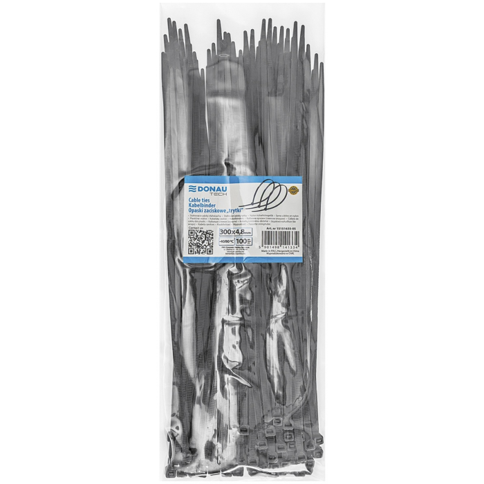 Sťahovacia páska na káble DONAU TECH 300x4.8mm, 100ks, čierna