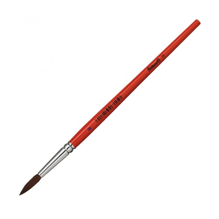 Guľatý vlasový štetec Pelikan 23, štandarndá kvalita, s hliníkovým úchytom, oranžová lakovaná rukoväť, hrúbka stopy uvedená ako číslo.