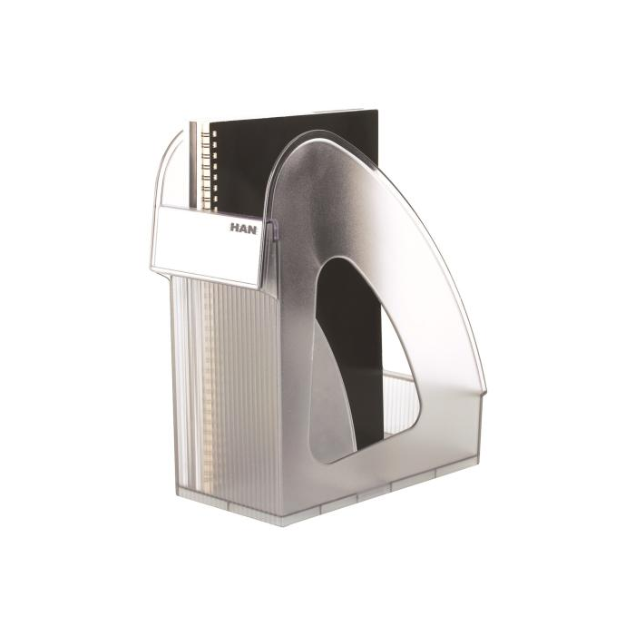 Stojan so šírkou chrbta 12 cm vhodný aj na ukladanie maxi brožúr, katalógov a pod. Jeden vyberateľný rozdeľovač ho umožní rozdeliť na 2 časti. Index na chrbtovej časti. Vonkajší rozmer (š × v × h) 120 × 305 × 260 mm.