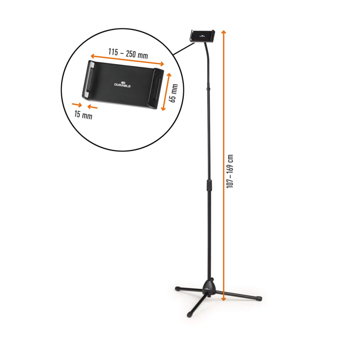 • Stojan na stôl a podlahu s držiakom na tablet a mobilný telefón, vybavený flexibilným ramenom a guľovým kĺbom