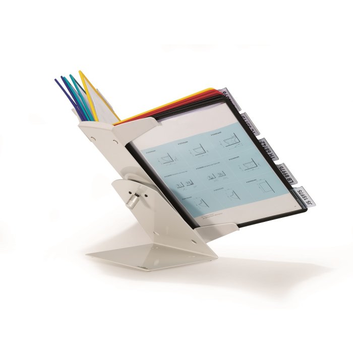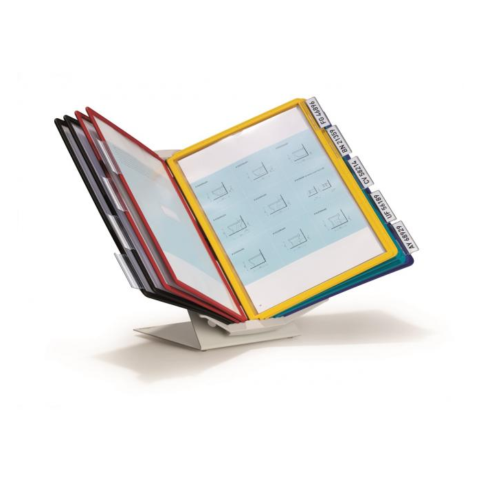 Variabilný a moderný panelový systém, ktorý je možné umiestniť na stôl alebo upevniť na stenu. Držiak panelov je možné natáčať, čo umožní horizontálne aj vertikálne listovanie. Je dodávaný s 10 panelmi. Farba stojana sivá, panely sú dodávané v mixe farieb (čierna, červená, žltá, zelená a tmavomodrá).