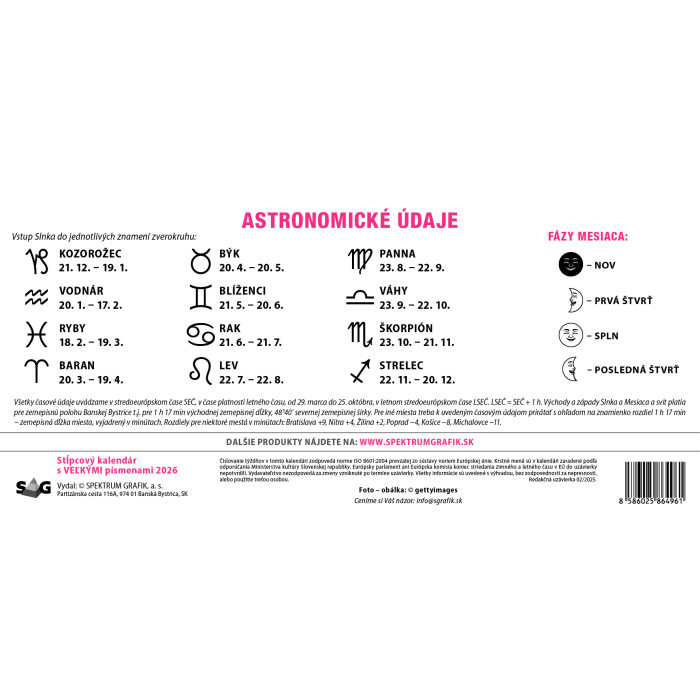 Stolový kalendár stĺpcový 29,7 x 13,8 cm s VEĽKÝMI písmenami 2026