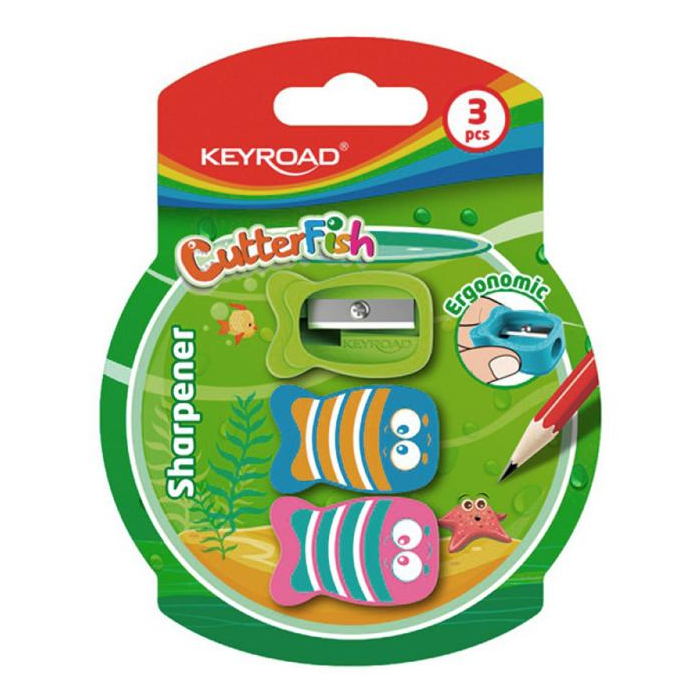 Strúhadlo KEYROAD CUTTER FISH plastové, blister 3 ks, mix farieb