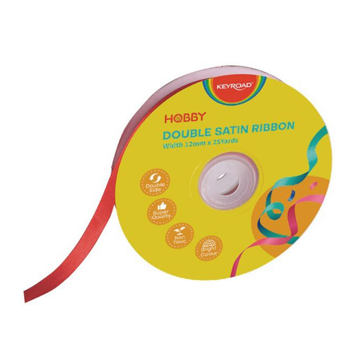 Stuha KEYROAD dvojitá saténová, 12 mm x 22,86 m, na cievke, červená