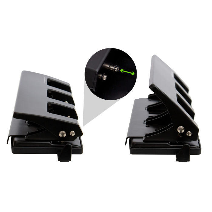 Dierovačka so štyrmi dierovacími otvormi a so štandardným rozstupom 8cm x 8cm x 8cm. Medzi funkcie patrí uzamykací mechanizmus pre jednoduché skladovanie a integrované vedenie papiera pre presné dierovanie. Kapacita papiera - 25 listov s gramážou 80 g/m². Farba čierna.