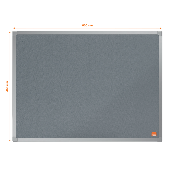 Plstená nástenka s eloxovaným hliníkovým rámom a upevnením do steny v rohoch na pripevnenie a zobrazenie vašich oznámení. Veľkosť: 600 x 450 mm. Farba sivá.