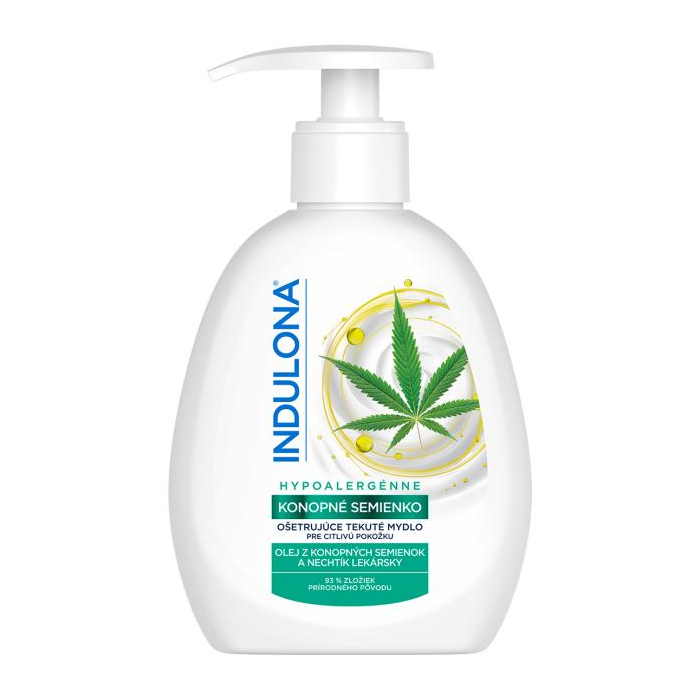 Indulona Hypoalergénne ošetrujúce tekuté mydlo KONOPNÉ SEMIENKO s olejom z konopných semienok a výťažkom z nechtíka lekárského bolo špeciálne vyvinuté tak, aby poskytovalo účinné čistenie a jemnú starostlivosť aj citlivej pokožke a minimalizovalo riziko alergickej reakcie. Zloženie obohatené o prírodné zložky s hydratačnými vlastnosťami pomáha zanechať po umytí pokožku rúk jemnú a vláčnu. 93 % zložiek prírodného pôvodu. Vhodné na každodenné použitie, pre celú rodinu. Pre citlivú pokožku. Dermatologicky testované. Praktické 250ml balenie s pumpičkou