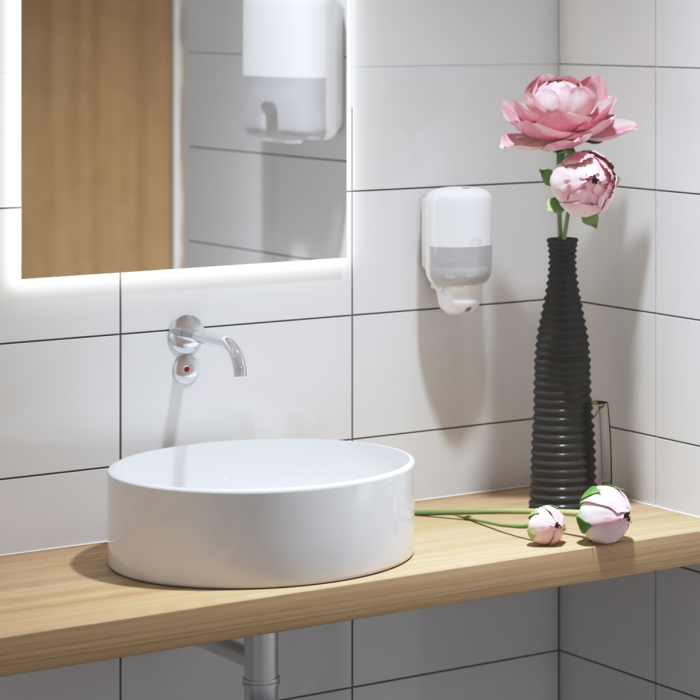 Z dávkovača vypusťte mydlo na mokré ruky, vytvorte penu, opláchnite a osušte jednorazovou papierovou utierkou.