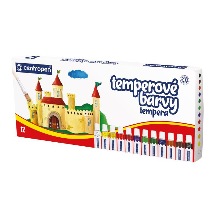 Temperové farby, 12 farieb balených v krabičke. Objem 1 kus/25 ml.