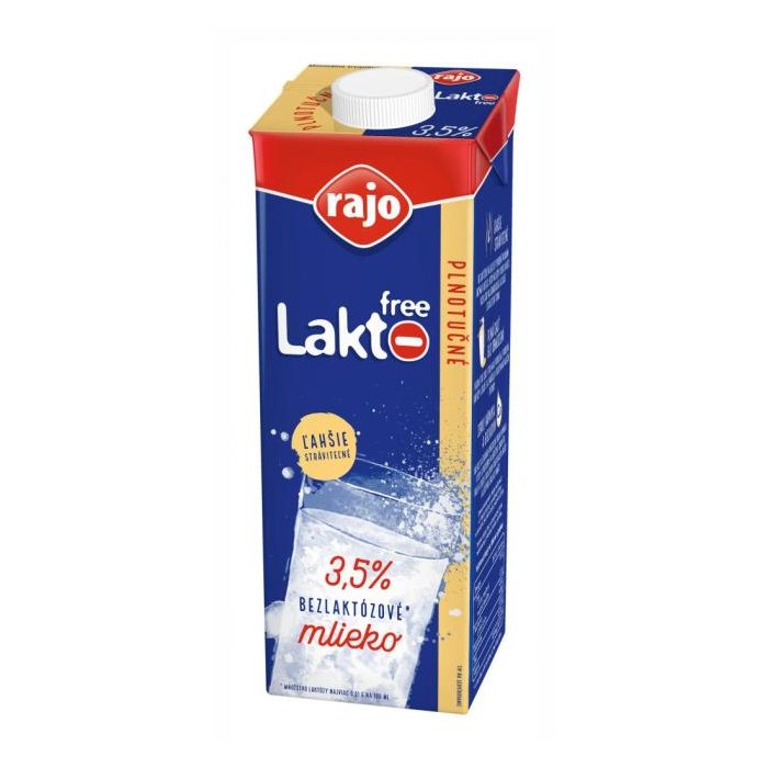 Trvanlivé bezlaktózové mlieko plnotučné. Tuk najmenej 3,5% Množstvo laktózy najviac 0,01g na 100ml, Ošetrené UHT. Homogenizované