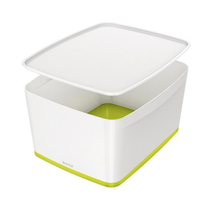 Úložný box s vekom Leitz MyBox, veľkosť L biela/zelená;;;