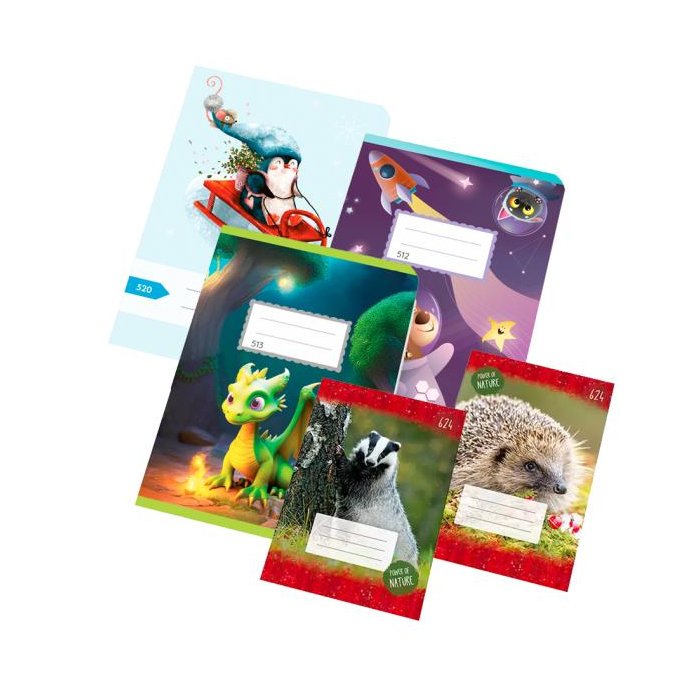 Univerzálna sada zošitov pre žiakov 2.ročníka obsahuje zošity: 10 x 512 A5 10 listov linajkový, 10 x 513 A5 10 listov linajkový, 1 x 520 a 1 x 624.
