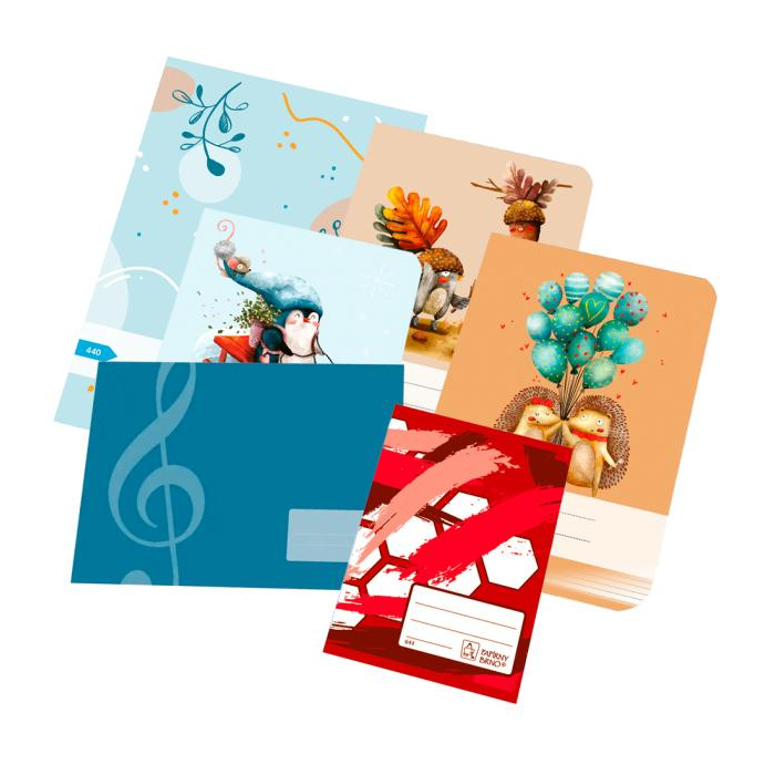 Univerzálna sada zošitov pre žiakov 4.ročníka obsahuje zošity: 1 x 440 A4 40 listov čistý, 1 x 517 A5 notový 8 listov, 1 x 520, 10 x 523, 10 x 524 a 1 x 644 A6 40 listov linajkový.