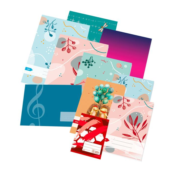 Univerzálna sada zošitov pre žiakov 6.ročníka obsahuje zošity: 1 x 420 A4 20 listov čistý, 2 x 440 A4 40 listov čistý, 1 x 444 A4 40 listov linajkový, 1 x 445 A4 40 listov štvorčekový, 1 x 460 A4 60 listov čistý, 1 x 517 A5 notový 8 listov, 3 x 524, 4 x 540 A5 40 listov čistý, 8 x 544 A5 40 listov linajkový a 1 x 644 A6 40 listov linajkový.