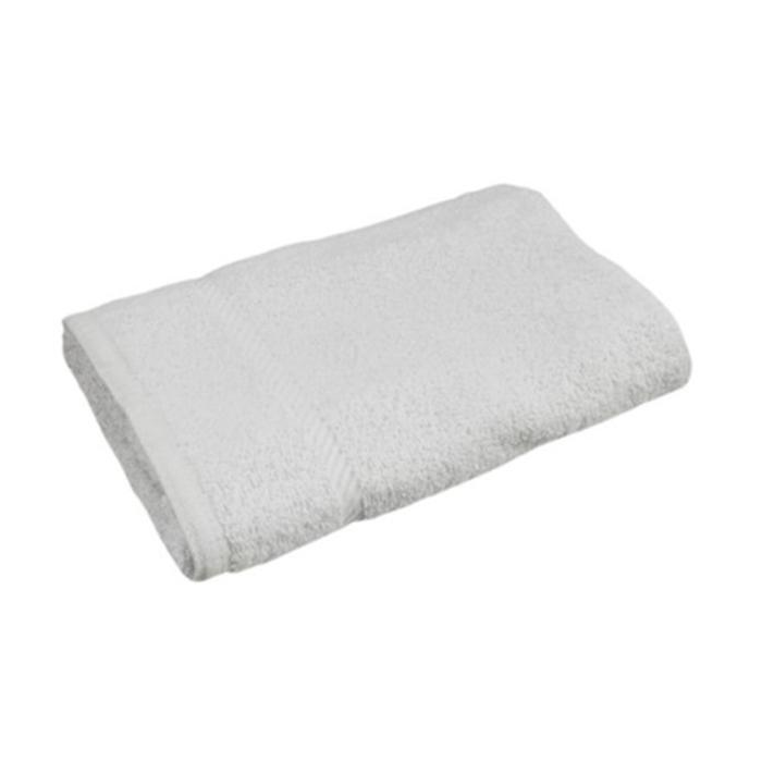 Biely uterák zo 100 % bavlny, dvojitá krútená slučka, dvojmo prešitý okraj. Rozmer 50×100 cm.