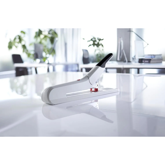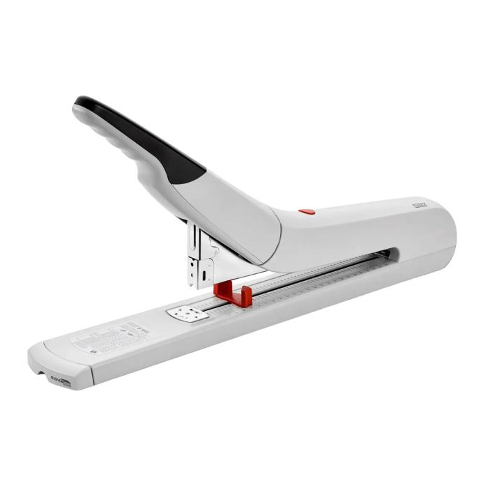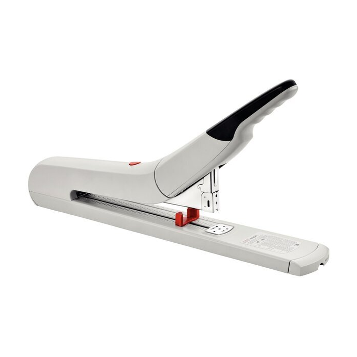 Silná veľkokapacitná zošívačka s kapacitou do 170 listov 80 g papiera. Kovový zásobník s dvojitým vedením spiniek. Kapacita náplne 100 spiniek 23/8 až 23/20SUPER. Hĺbka zošívania 25 cm. Hmotnosť cca 2400 g. Záruka 25 rokov.