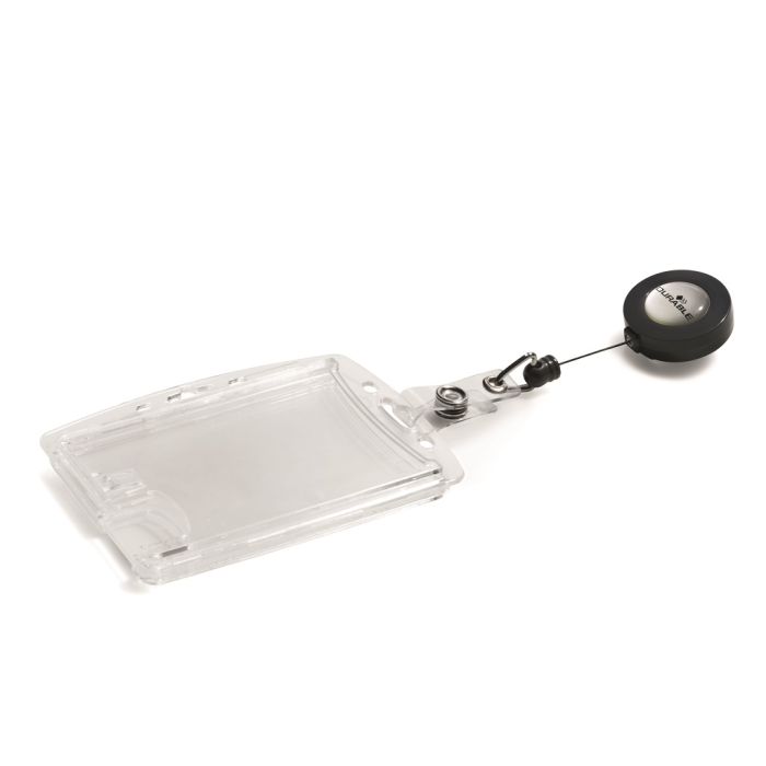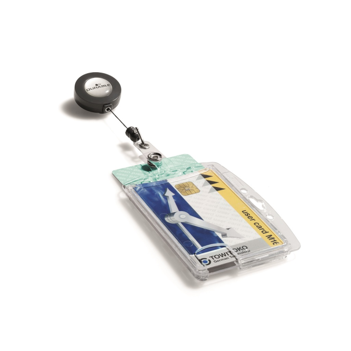 Visačka na karty v uzavretom prevedení na 2 ID karty/bezpečnostné preukazy. Krištáľovo čistý materiál pre optimálnu čitateľnosť a jednoduché skenovanie čiarových kódov. S otvorom pre palec pre ľahké vybratie karty. Možno kombinovať s retiazkou, navíjacou menovkou alebo textilnou šnúrkou na zavesenie. Držiak karty je možné použiť vo formáte na výšku alebo na šírku. Vnútorné rozmery: 54 x 87 mm (V x Š).