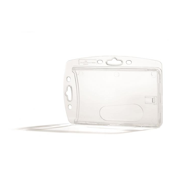 Uzavretá visačka na jednu plastovú kartu zo silného priehľadného nepružného plastu, chrániaca karty z oboch strán. Vkladanie kariet po kratšej strane. Možnosť použitia horizontálne aj vertikálne, kombinovateľná s klipom, remienkom a retiazkou. Balenie 10 ks.
