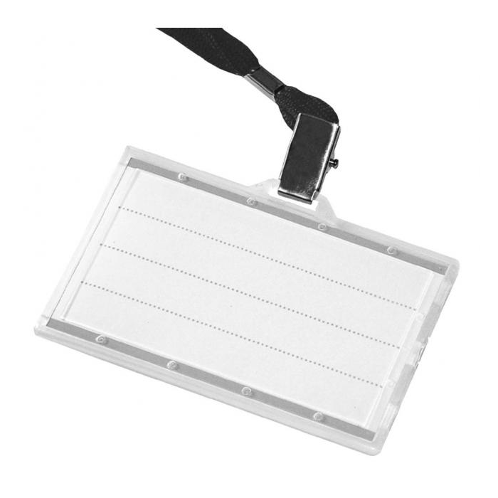 Visačka na plastovú kartu s výrezom na palec pre uľahčenie vysunutia karty a štipcom s remienkom. Džka remienka 51 cm. Balenie 50 ks. Rozmery: 85 x 50 mm Farba remienka: čierna
