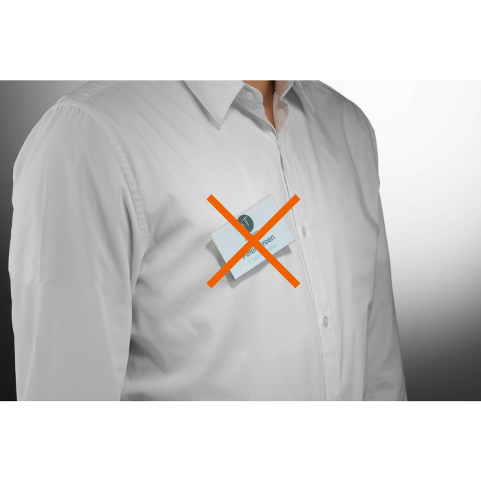 • Menovka so špeciálnym magnetickým zapínaním, ktoré zabraňuje skrúteniu, skĺznutiu alebo uvoľneniu menovky pri nosení