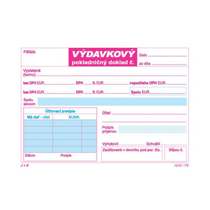 Tlačivo - Výdavkový pokladničný doklad A6 dvojfarebný 2xDPH, 100 listov