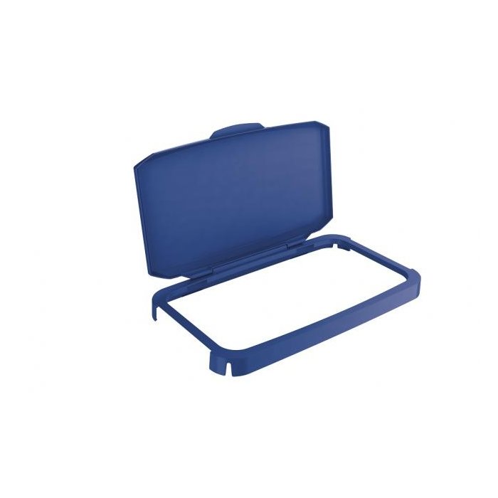 Obdĺžnikový rám s vekom na koše DURABIN 60 so systémom clip-on, ktorý umožňuje pevné uchytenie na koše. Farba modrá.