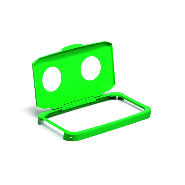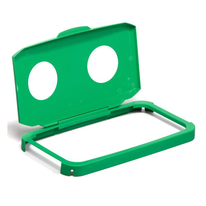 Obdĺžnikový rám s vekom na koše DURABIN 60, obj.kód DU496050, so systémom clip-on, ktorý umožňuje pevné uchytenie na koše. Vhodný na plechovky a fľaše. Farba: zelená