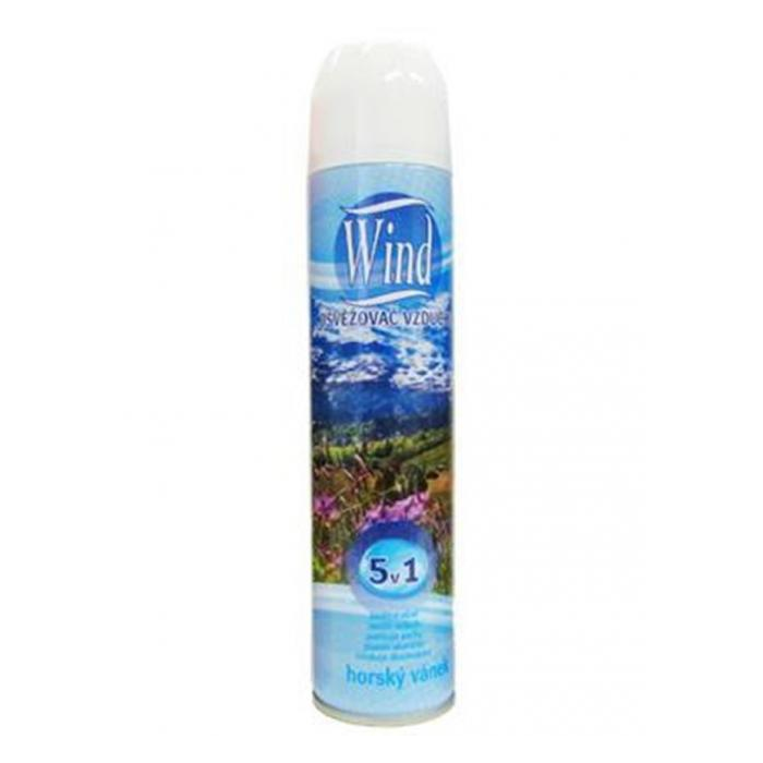 Osviežovač vzduchu Wind v spreji s neutralizérom pachov. Aerosol rychle a účinne osvieži vzduch vôňou horskej vône.