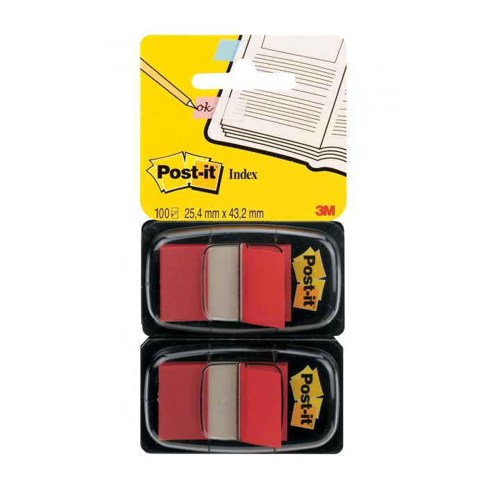 Záložky Post-it Index široké 25,4x43,2 červená 2ks