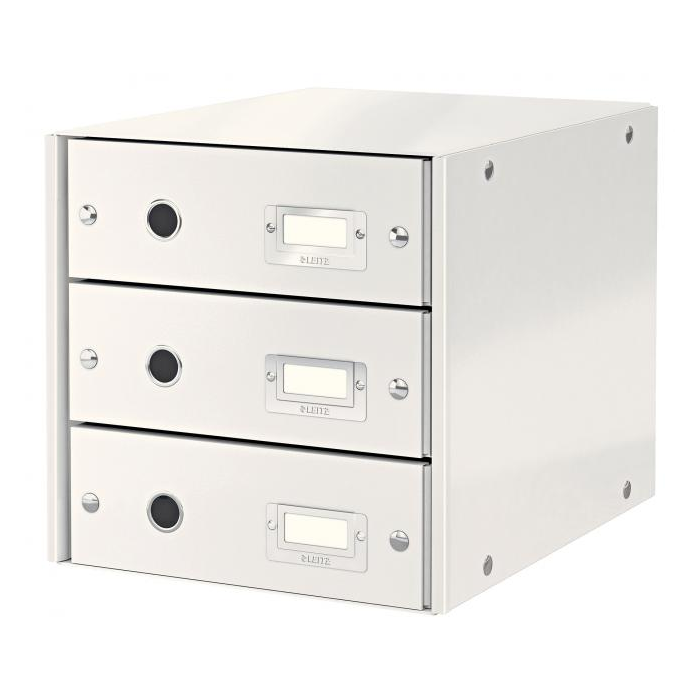 Zásuvkový box s 3 zásuvkami na formát dokumentov A4. Box je rozložiteľný pre úsporu miesta, keď sa nepoužíva. Kovové úchyty pre ľahkú manipuláciu so zásuvkami. Rámik na popisovací štítok. Laminovaný povrch pre lepšiu a trvalejšiu ochranu. Moderný design, ktorý vyzerá skvelo doma i v kancelárii. Veľkosť zásuviek odpovedá bežným kancelárskym rozmerom (na formát A4). Kovový úchyt pre jednoduché vytiahnutie zásuvky. Rámik na štítok pre ľahké popisovanie každej zásuvky. Vnútorné rozmery (ŠxVxH): 330 x 81 x 251 mm (na zásuvku). Farba biela.