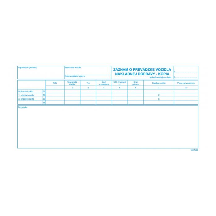 Dopravné tlačivo. Záznam o prevádzke vozidla nákladnej dopravy, 2/3 A4, kniha, 100 listov, kópia.