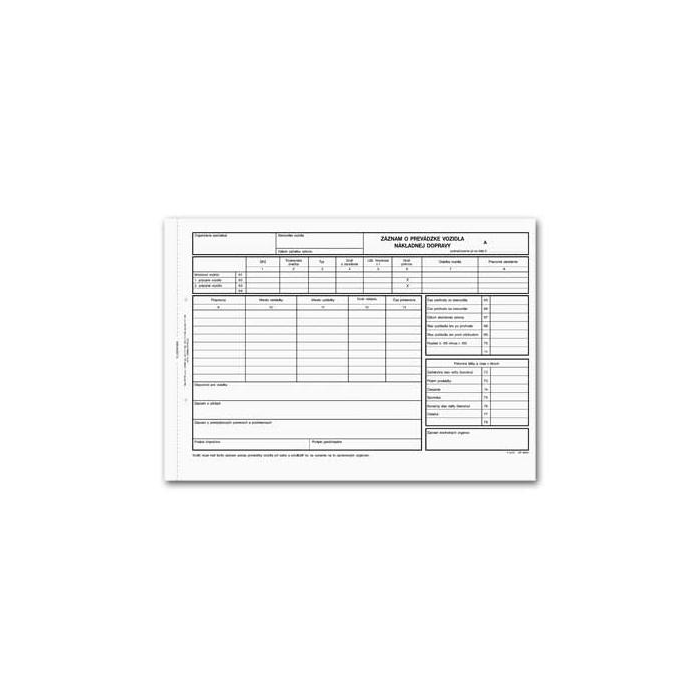 Dopravné tlačivo. Záznam o prevádzke vozidla nákladnej dopravy, A4, kniha, 100 listov, číslovanie.
