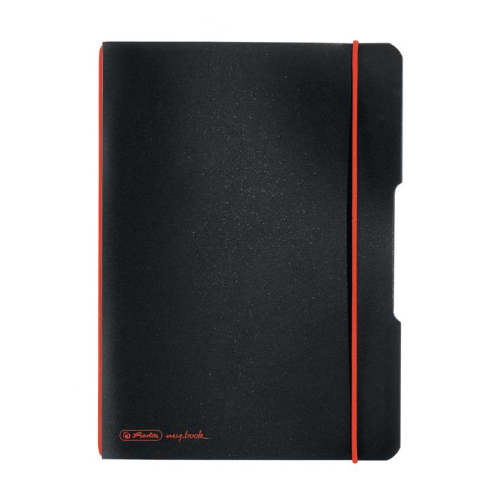 Zošit my.book flex - A5/40 listov, štvorčekový, PP, 80g/m2, zaoblené rohy, priehľadný s červenou gumičkou na zatváranie. Farba čierna.